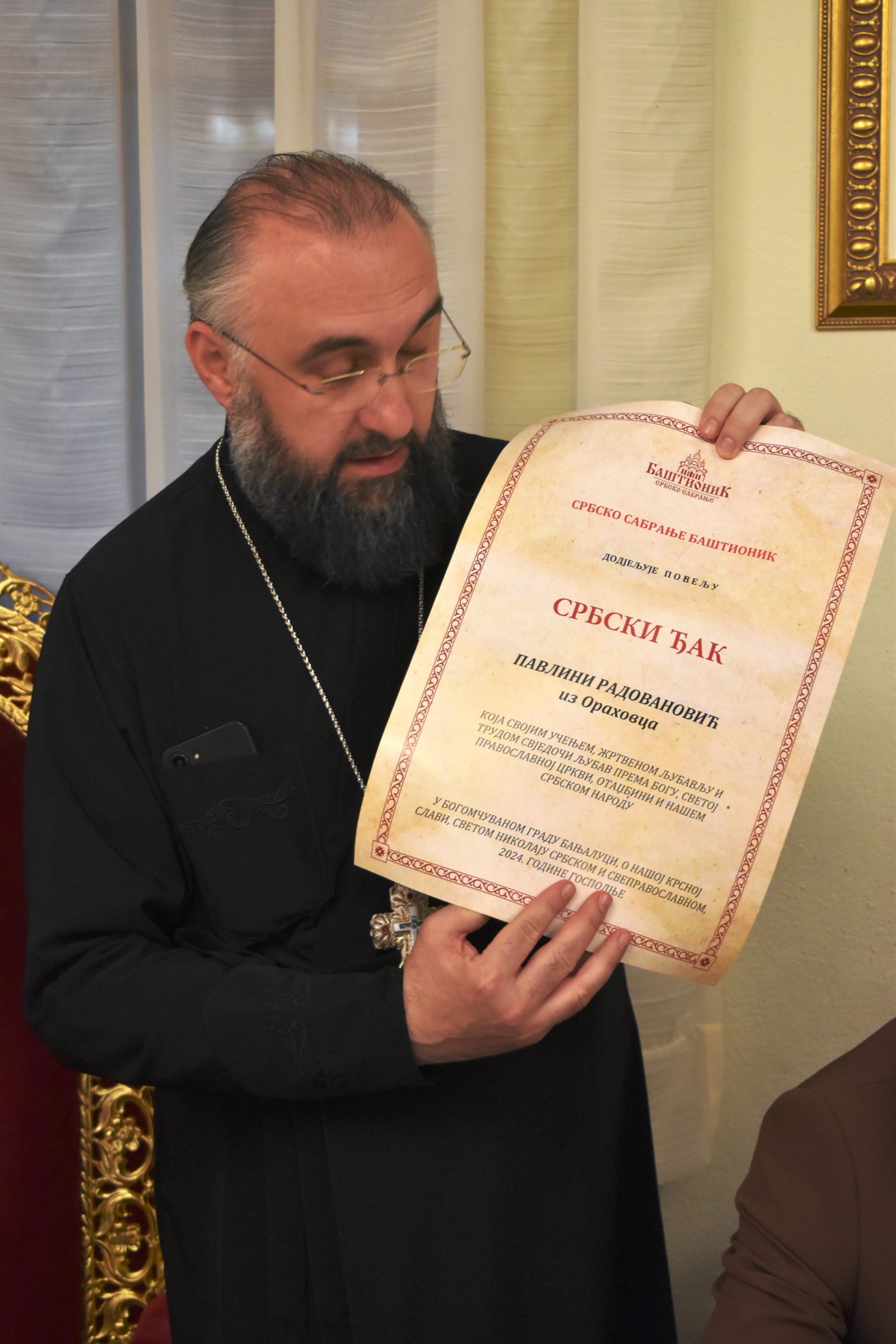 Баштионик је од архимандрита Теофила, игумана осовичког са свим у Христу братством, добио признање „Осовичко слово добродетељне захвалности”, за деценијски рад на обнови живота у овој светињи.