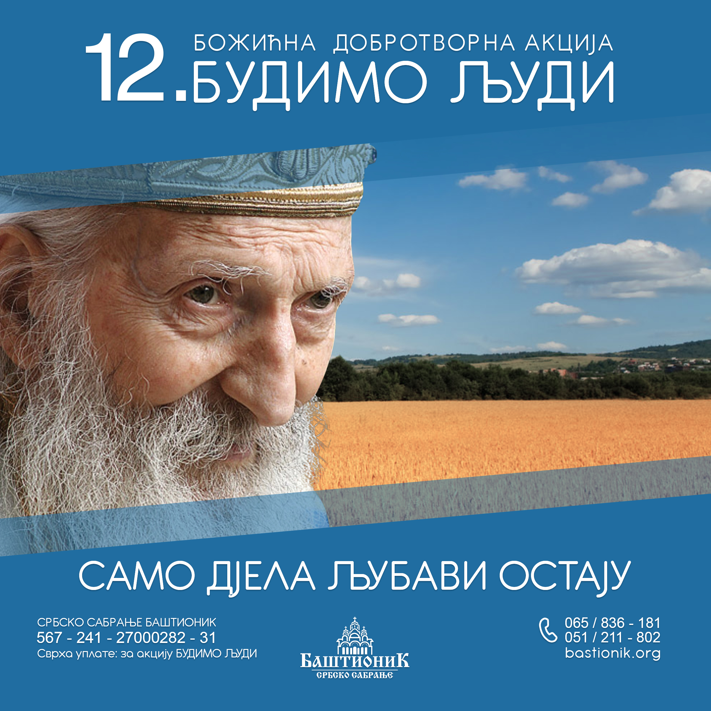 Такође, свој прилог можете оставити у једној од наших кутија које се налазе у многим православним храмовима, угоститељским и трговачким објектима, као и у сједишту Баштионика (књижара „Ризница“, хотел Видовић, Јеврејска бб, Бањалука).