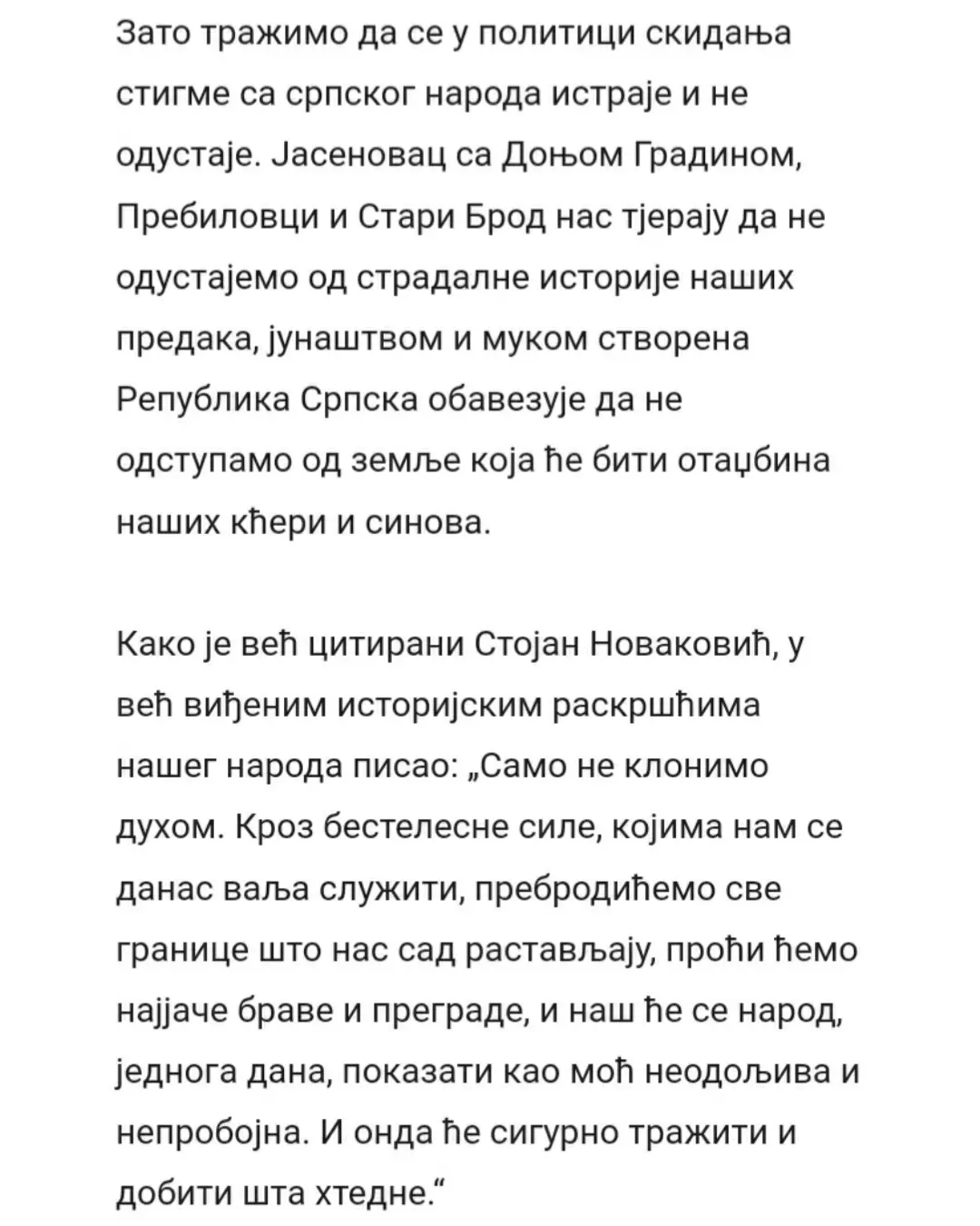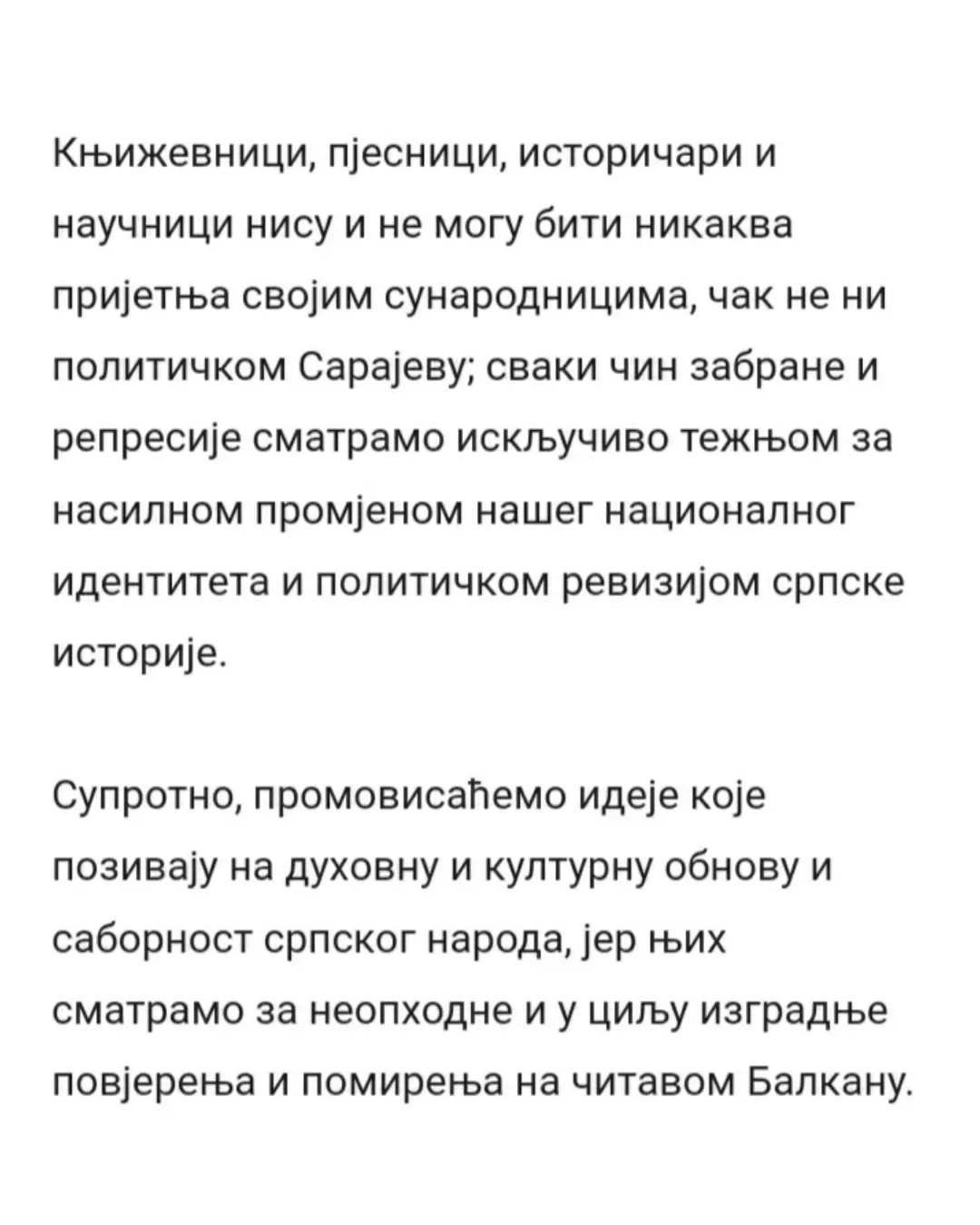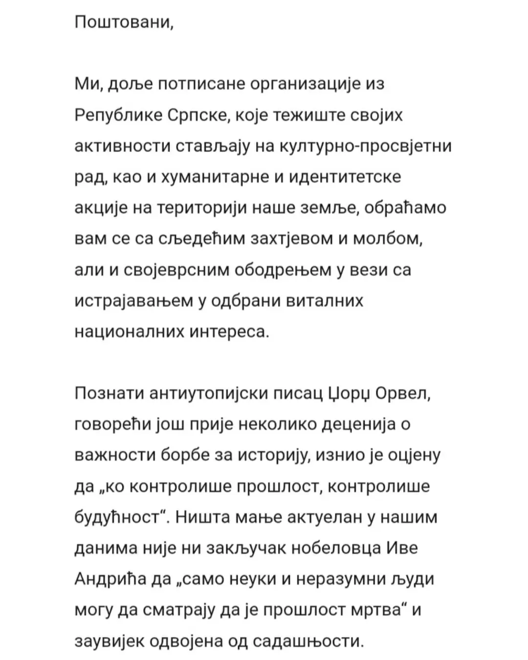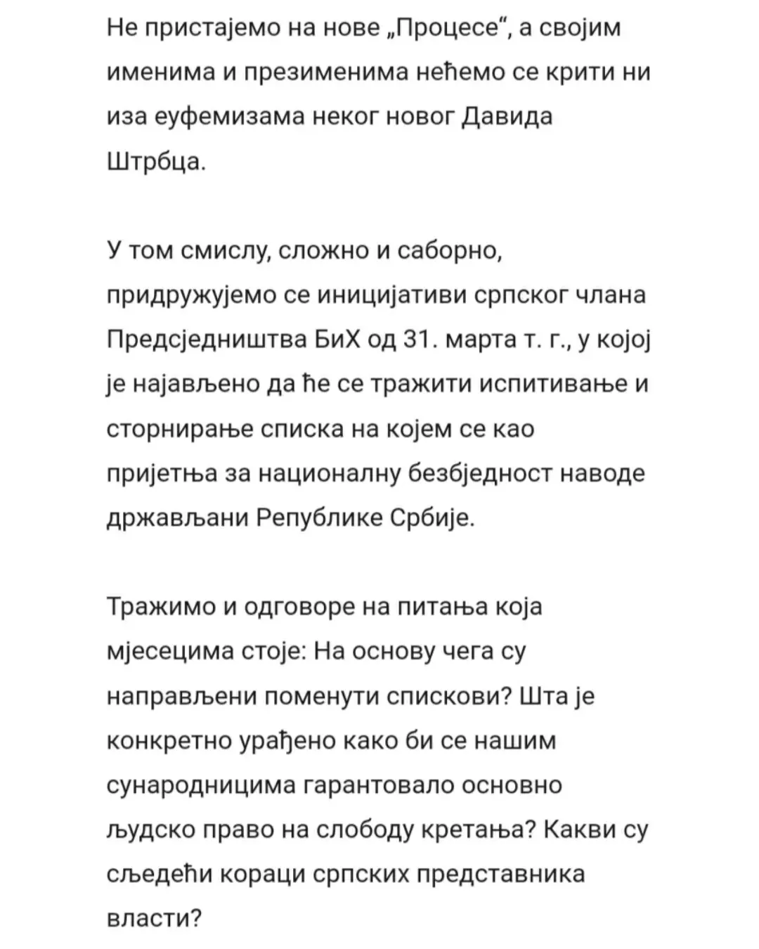 Данас, на Дан српског јединства, слободе и националне заставе, десет невладиних организација из Републике Српске, међу којима је и Србско сабрање Баштионик, упутило је отворено писмо подршке професору Милошу Ковићу. У писму се истиче да је забрана уласка у државу једном од највећих живих српских интелектуалаца без икаквог образложења апсолутно недопустива, те подсјећа јавност да очигледно постоје спискови оних који су непожљени за неке са ове стране Дрине.