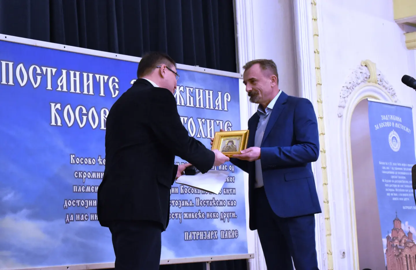 Предсједник Србског сабрања Баштионик, Предраг Адамовић је у знак захвалности и сјећање на Сретење у Бањалуци, господину Чворовићу уручио икону Светог свештеномученика Платона Бањалучког.